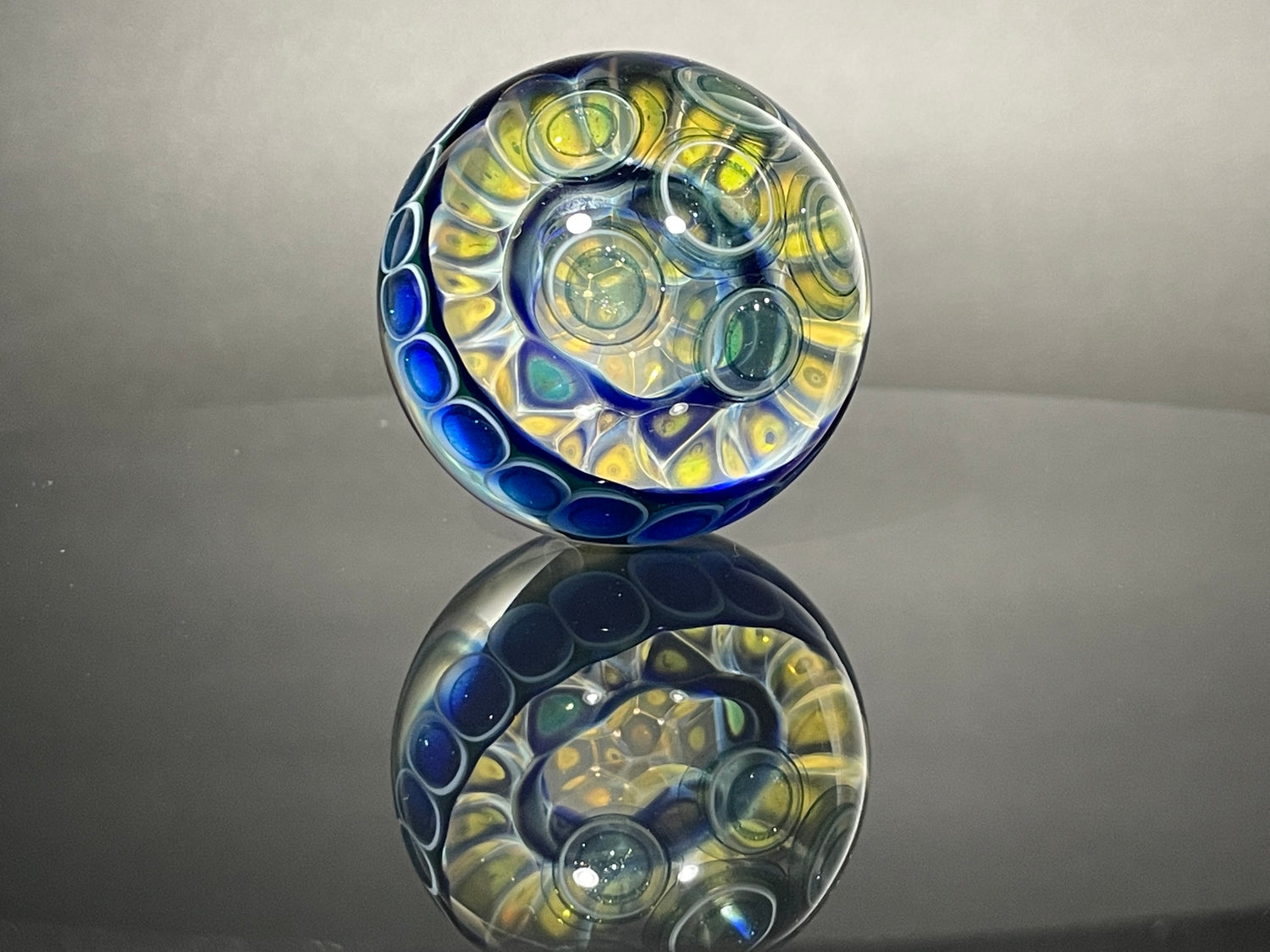 Travis Weber started working with glass in 1997 and has been making contemporary art glass marbles since 2005. Trav’s goal is to create new and different styles of glass designs. Usually capturing the design in a marble form.